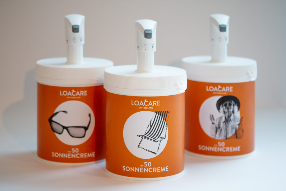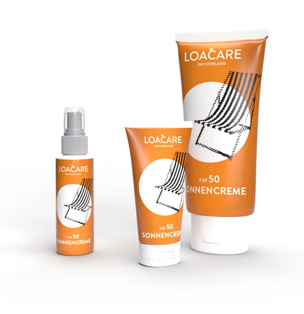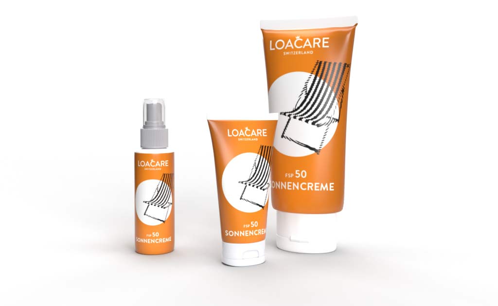 Lösung Um die Qualität zu zeigen, kreieren wir die Eigenmarke LoaCare. Die Rezeptur wird verbessert (ohne krebserregende Stoffe). Die neue Marke zeigt drei verschiedene Sujets, die je nach Kundenwunsch auch individualisiert werden können. Und wir sind im Stande, diese schnell einziehende Sonnencreme in den Gebinden 30 ml, 50 ml, 75 ml, 100 ml und 1 Liter anzubieten.
